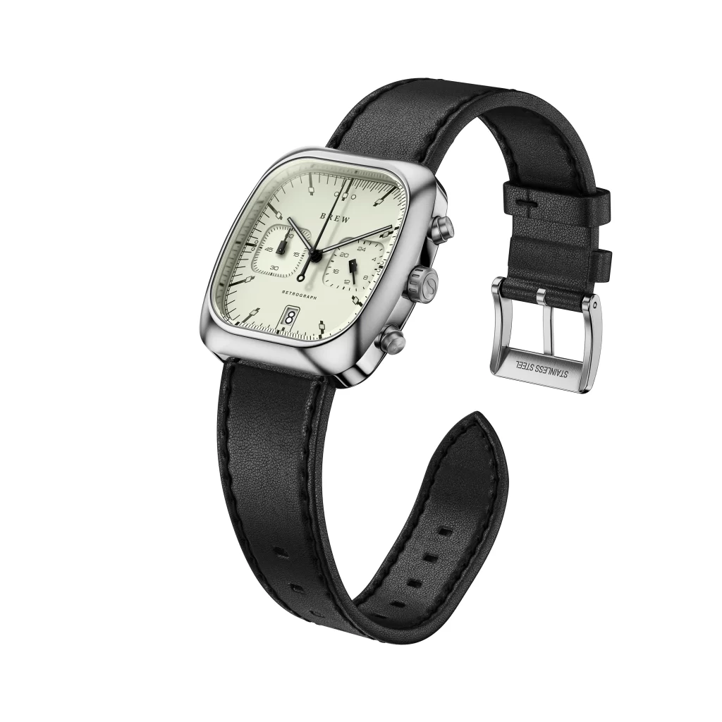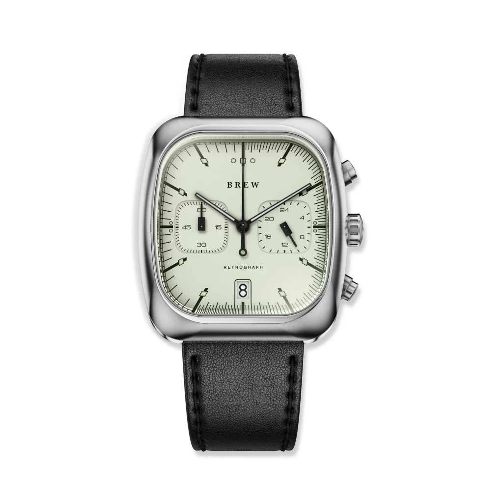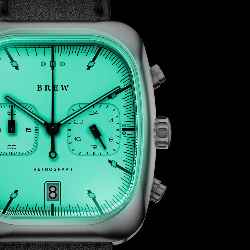A blend of retro aesthetics and modern functionality, the new Retrograph – Lumint makes a distinct mark with its vintage-inspired design and luminescent dial. This timepiece features a 38mm stainless steel case, paired with a robust sapphire crystal for added durability. With a hybrid meca-quartz chronograph movement, it offers both the precision of quartz and the satisfying feel of a mechanical watch. The mint-white dial glows in the dark, and the leather strap with quick release completes its stylish and practical appeal.