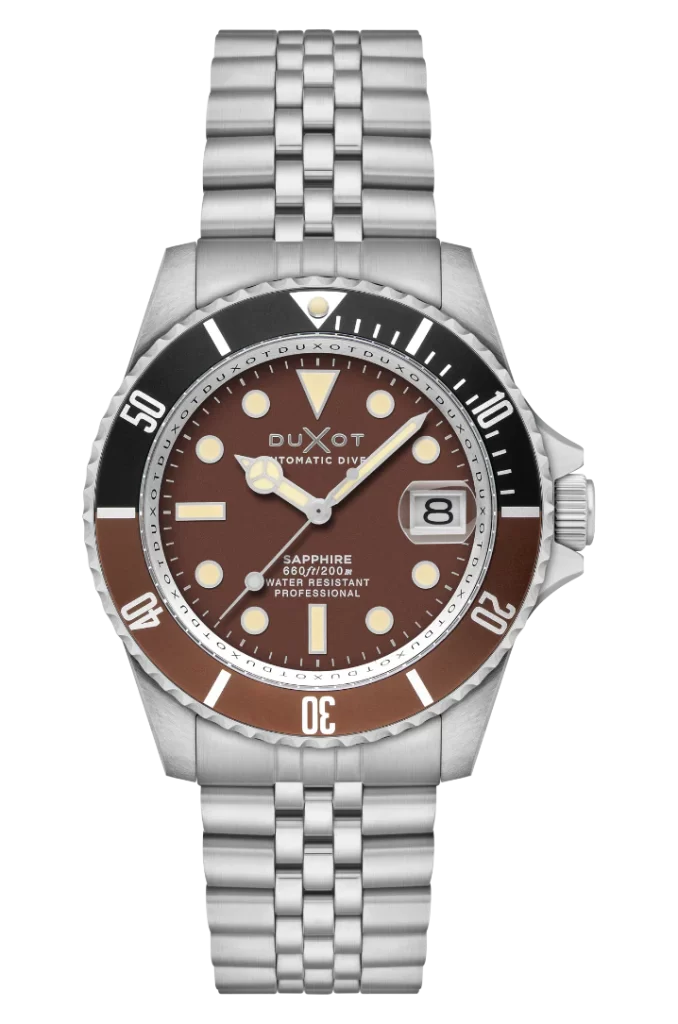 The Atlantica Diver Automatic is built for adventure, featuring a rugged 42mm stainless steel case and a rich brown dial that pairs well with the applied index markers. Its Japanese Automatic movement ensures reliable performance, while the sapphire lens and screw-down crown enhance durability. Water-resistant up to 20 ATM (200 meters), this diver’s watch also boasts a robust 22mm stainless steel band with a secure fold-over buckle. This solid, versatile timepiece combines both style and functionality for daily wear and diving alike.