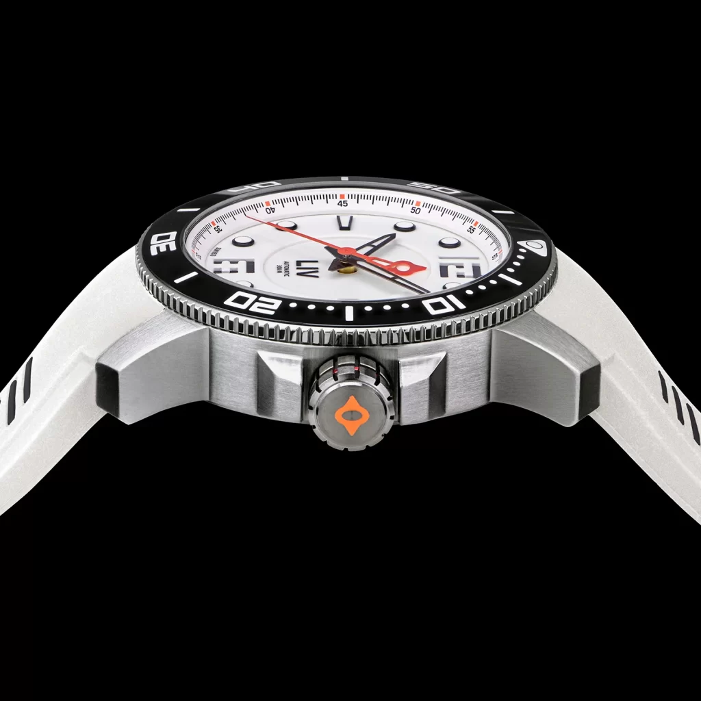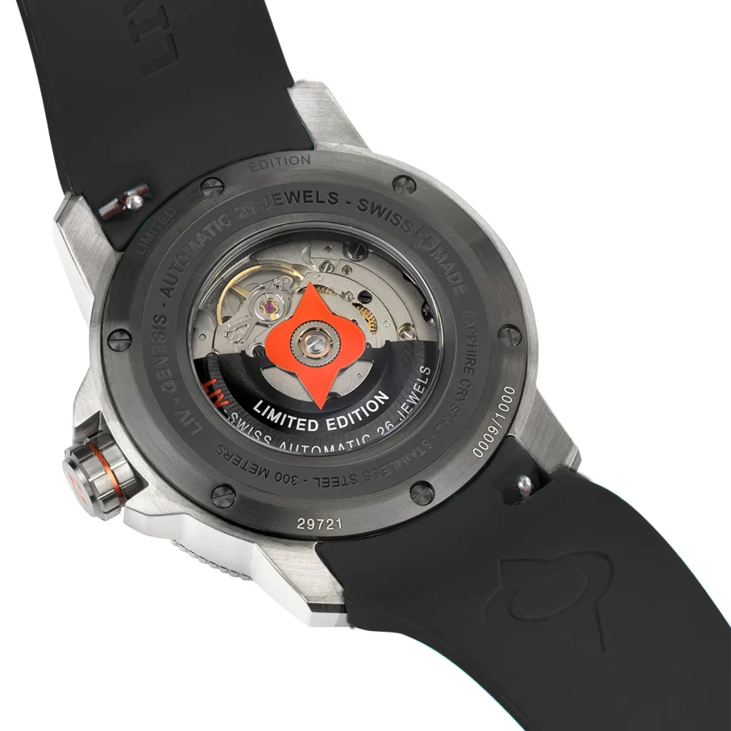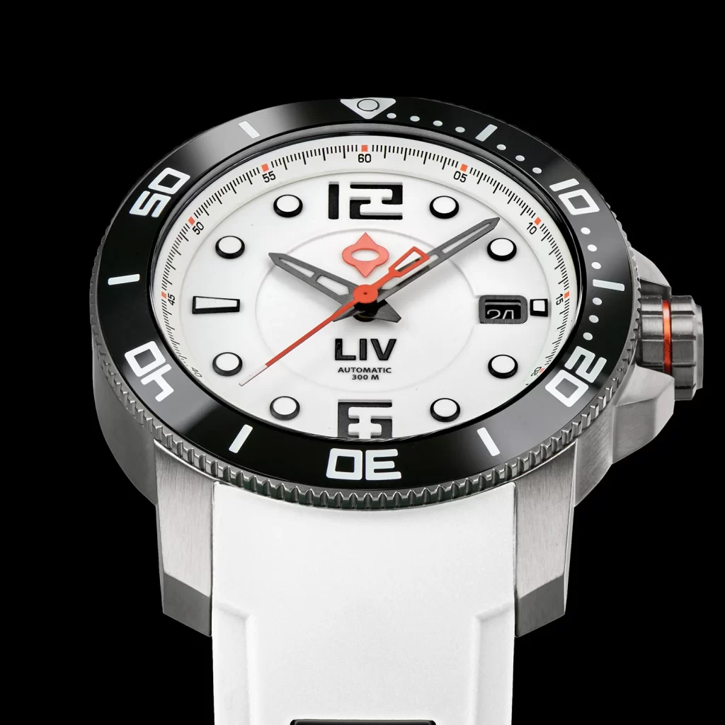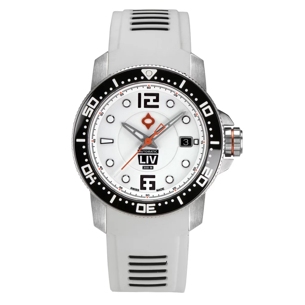 With a robust design and impressive specs, the new LIV GX-Diver’s 41mm Full Lume is built for those who dive deep, whether in the ocean or urban life. Driven by a 26-jewel Swiss automatic movement and equipped with a unidirectional ceramic bezel, this diver’s watch holds its own at depths of up to 300 meters. A fully lumed dial ensures exceptional readability underwater, complemented by a scratch-resistant, anti-reflective sapphire crystal. This piece combines functional style with rugged reliability, showcasing LIV’s commitment to quality.