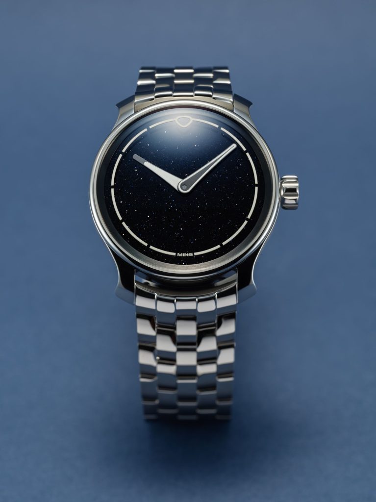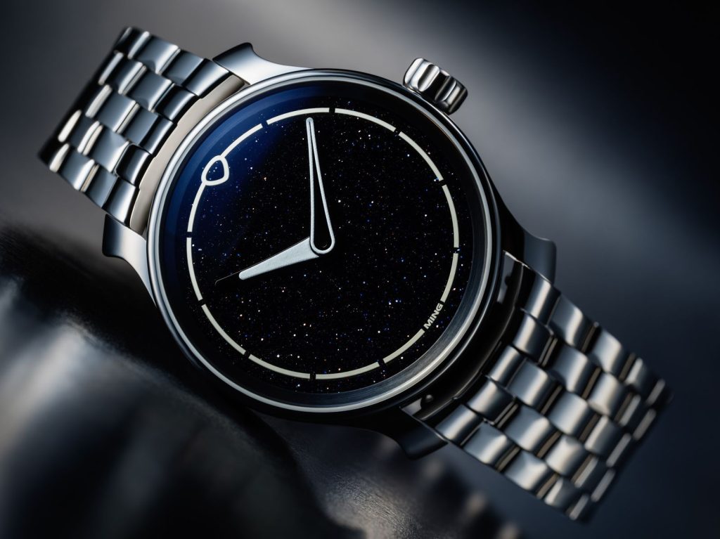 MING unveils the 37.08 Starlight, a limited edition watch priced at CHF 4,500, featuring an aventurine dial resembling a starry night sky. Housed in a 38mm 316L stainless steel case, it boasts a Sellita SW210.M1 hand-winding movement with a 40-hour power reserve. The polished dial doesn’t require an additional sapphire layer, maintaining its sleek design. The watch is equipped with Super-LumiNova X1 coated hands and a second-generation universal bracelet. Deliveries start in August 2024.