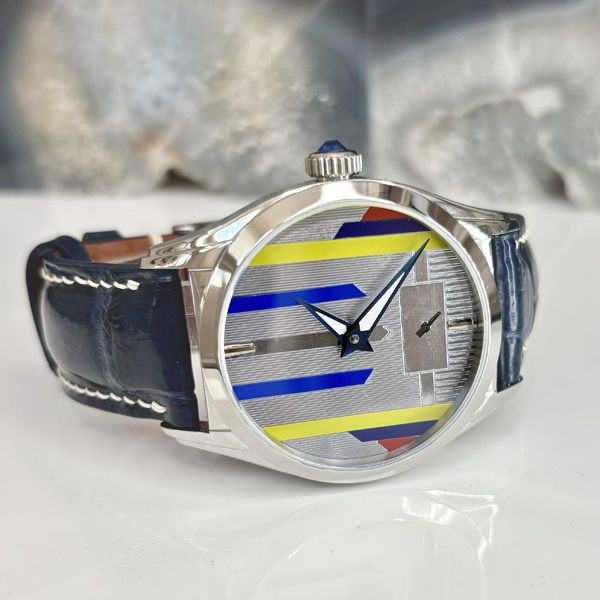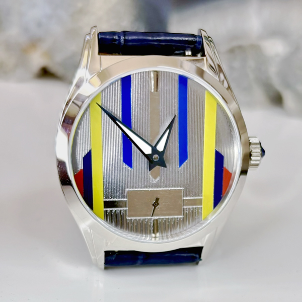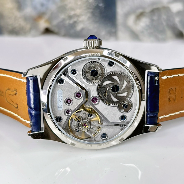 Rpaige introduces the JukeBox “Bauhaus,” a limited edition watch inspired by 1940s design. It features a 41mm stainless steel case, 12mm thickness, and a Swiss DB6 movement with 17 jewels and blued steel screws. The watch has a vintage 1950s Bauhaus dial with chrome markers and Dauphin style hands. It includes a genuine blue alligator strap and offers water resistance up to 50 meters. Priced at $1,800, this model is limited to 100 pieces.