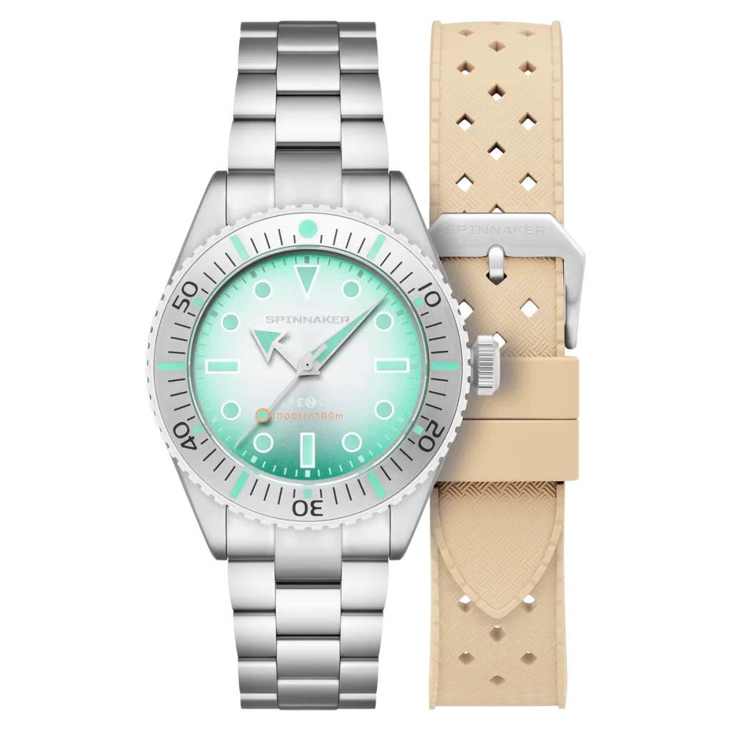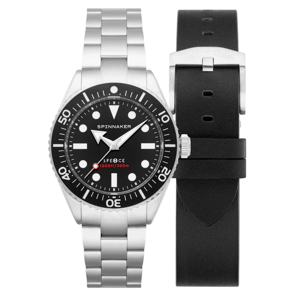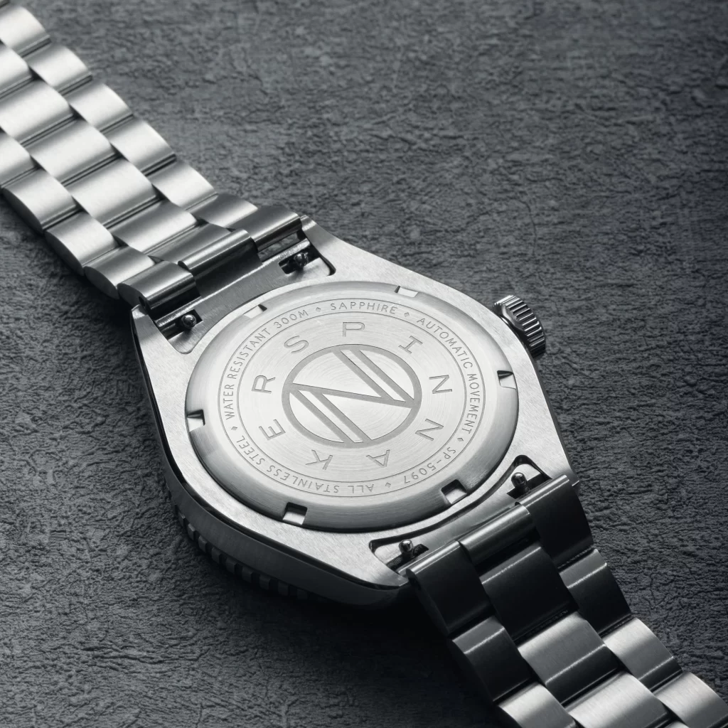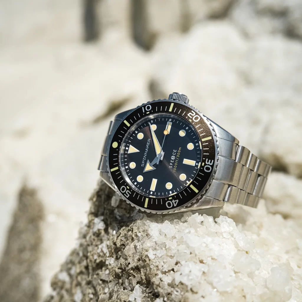 Discover the Spence 300, a marvel of precision and engineering in a sleek 10.9mm thick design. This automatic watch boasts a 40mm stainless steel case, blue dial with applied indices, and Swiss Super-LumiNova for superior visibility. It offers an impressive water resistance of 300 meters, making it perfect for diving enthusiasts. The sapphire lens and screw-down crown ensure durability, while the 20mm stainless steel band with fold-over buckle adds a touch of sophistication.